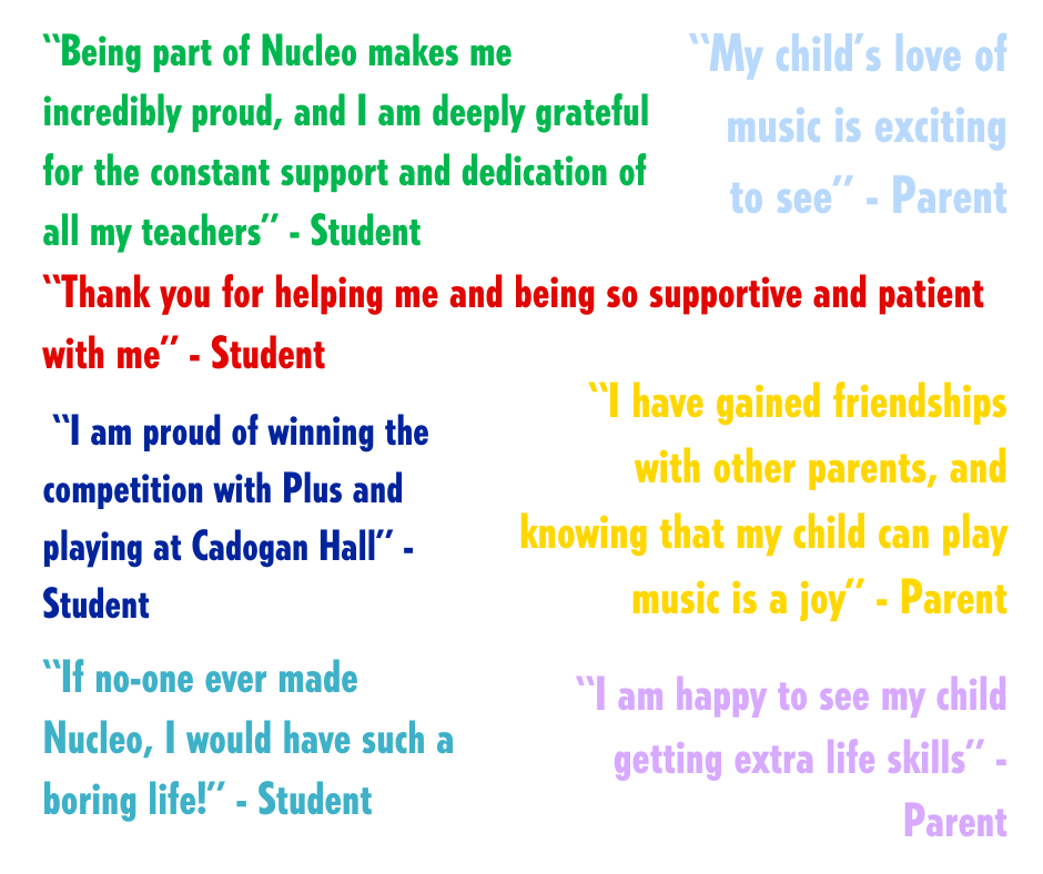 We regularly give students, parents and carers the space to anonymously share their thoughts about Nucleo. Here is a taster of what our young musicians and their families reported: